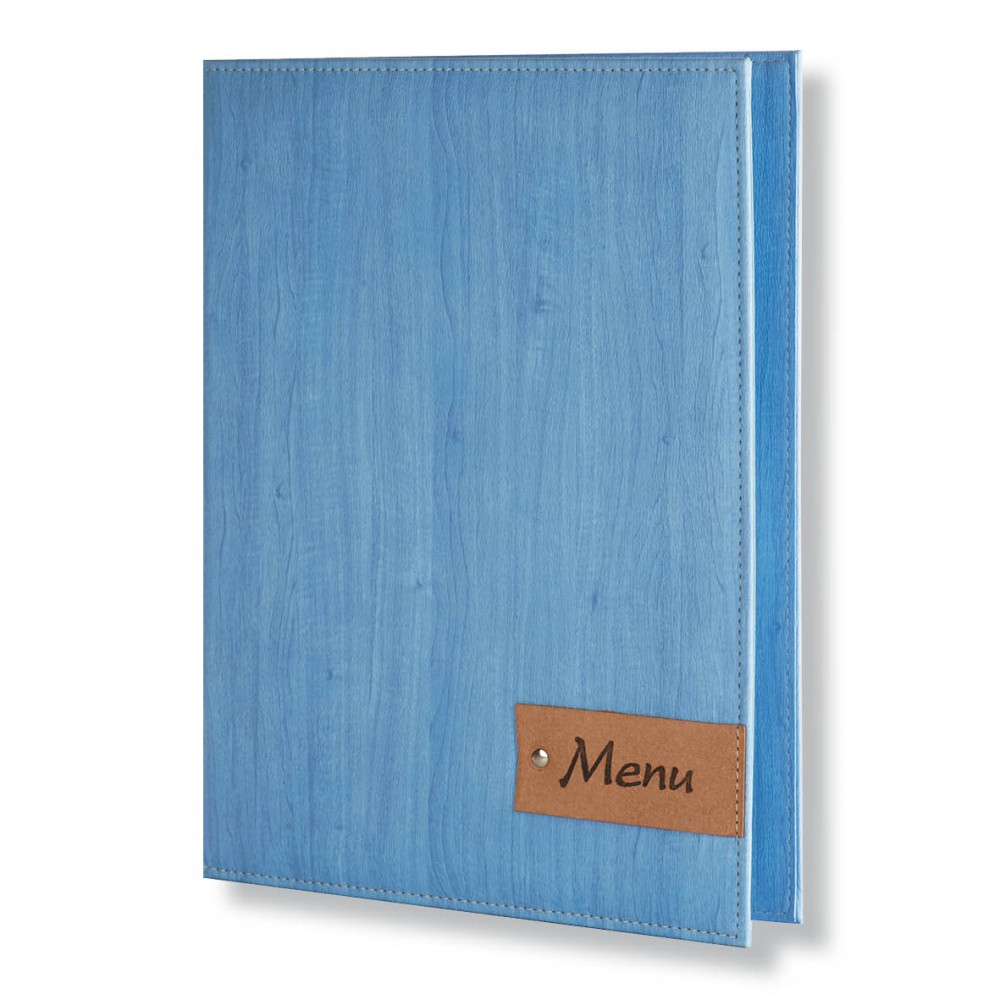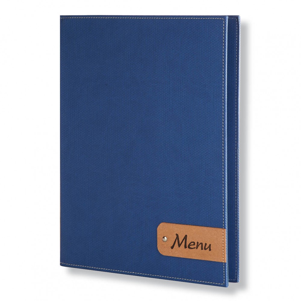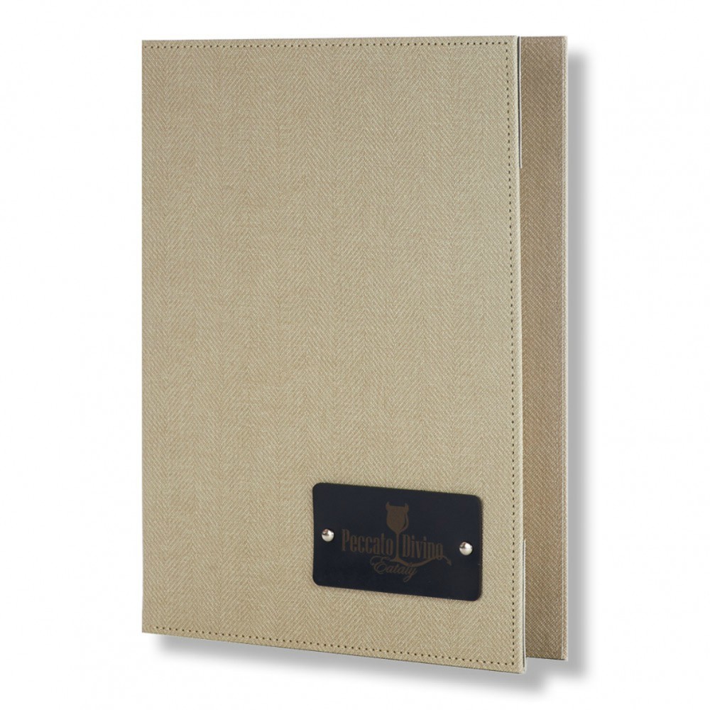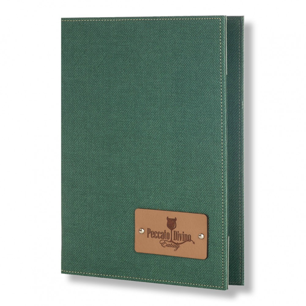 Menu holder Artemis Leather-Tab, with a leather tab attached to cover The detail of the leather tab ..