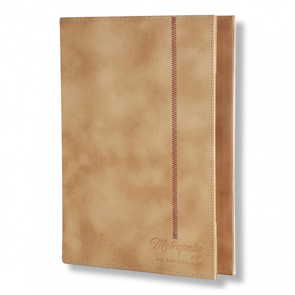 Menu folder Olympia, with short or long zig zag decorative stitching that ends up in your logoBy cha..