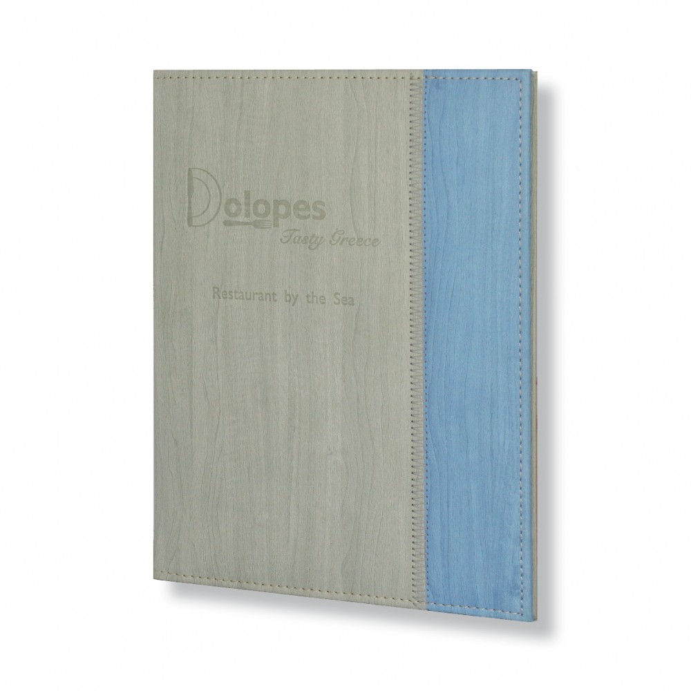 Menu folder Ilida+, a two-color design with vertical decorative zig zag stitching