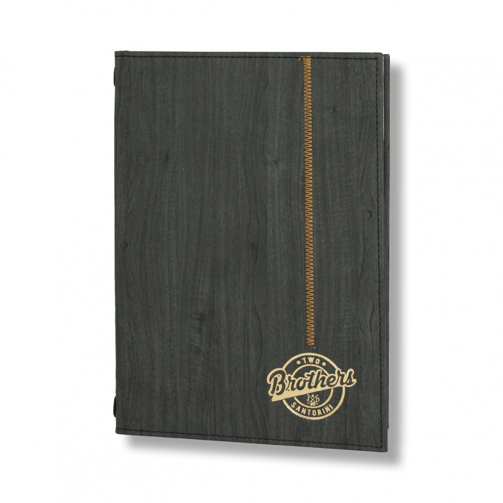 Menu folder Olympia, with short or long zig zag decorative stitching that ends up in your logo