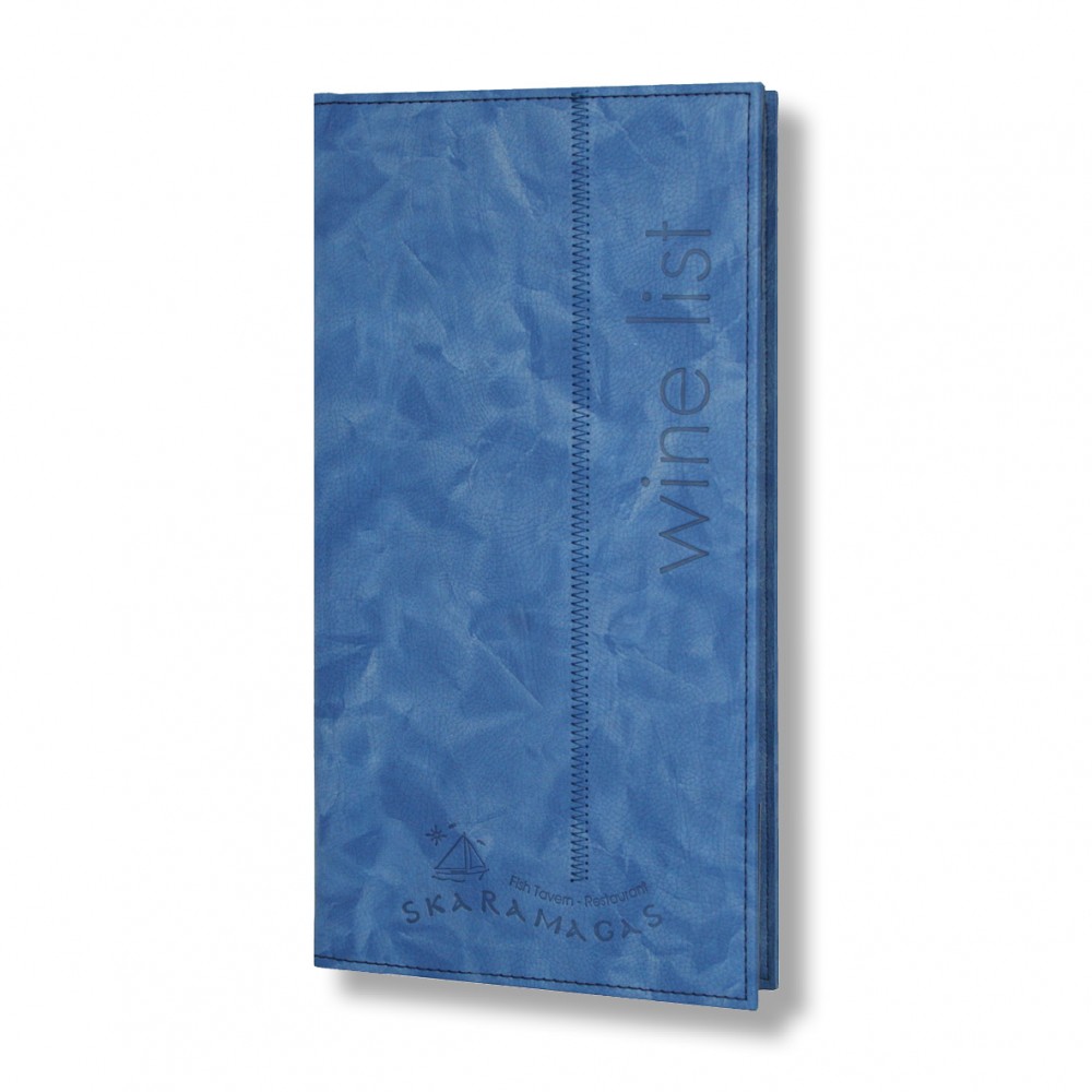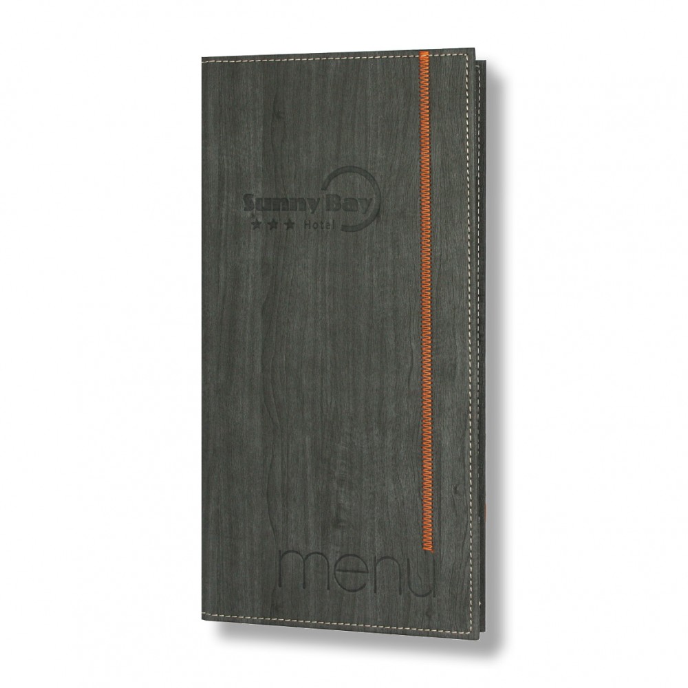 Menu holder Olympia, with short or long zig zag decorative stitching that ends up in your logo
